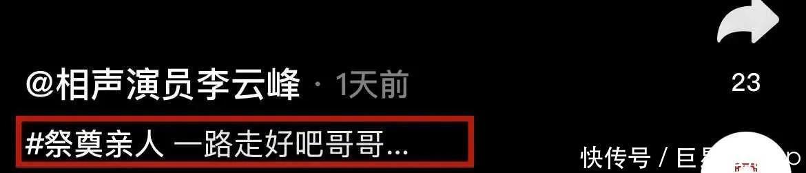 相声演员李云峰在个人社交平台发文“#祭奠亲人 一路走好吧哥哥…”。